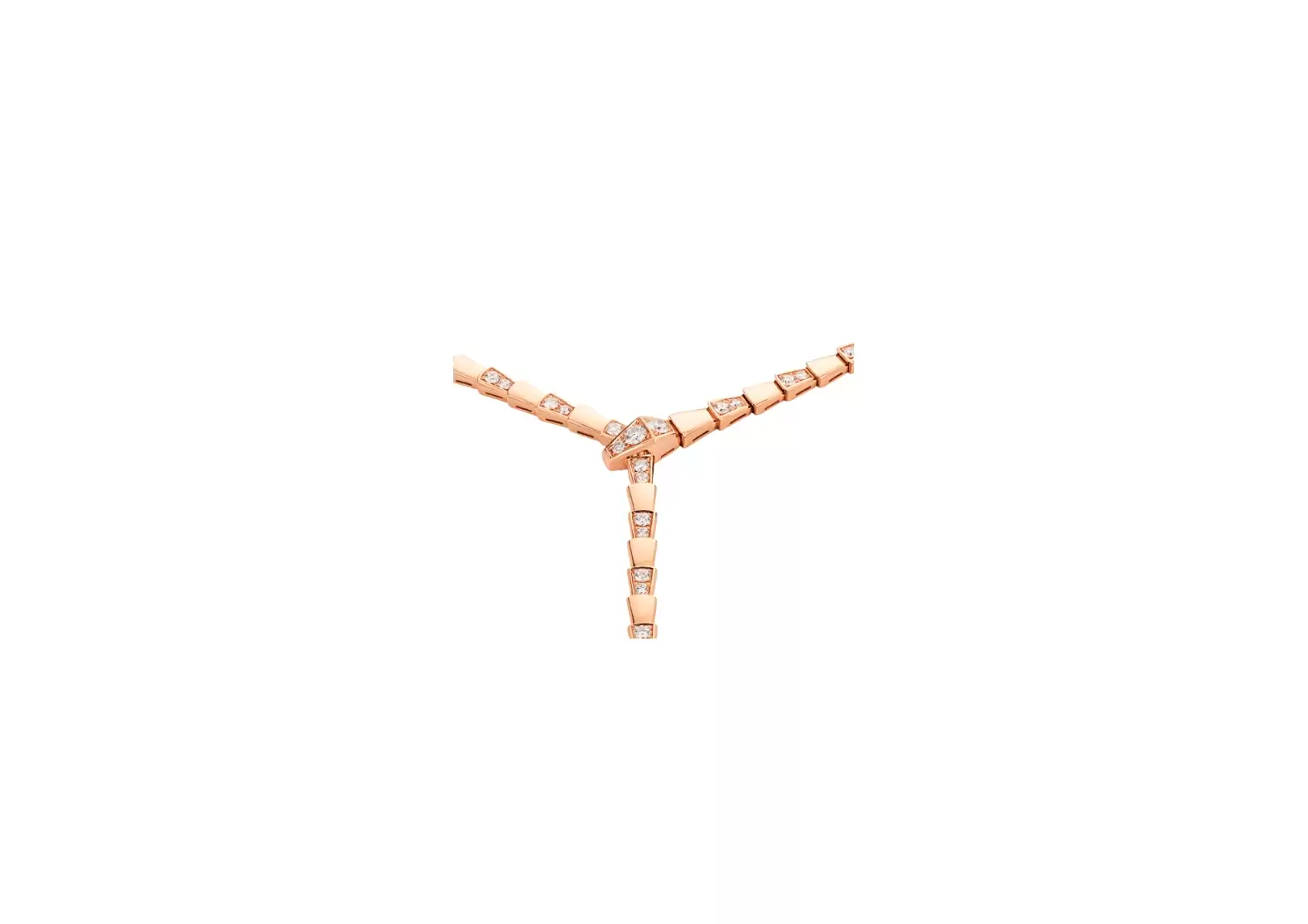 Introducing the Serpenti Viper thin necklace in 18 kt rose gold, set with demi-pavé diamonds. Prepare to be enchanted by Bvlgari's mesmerizing creation, as it pays homage to the captivating allure of its spirit animal. This necklace effortlessly blends seduction and temptation, concealing sensuality within its hypnotic design.