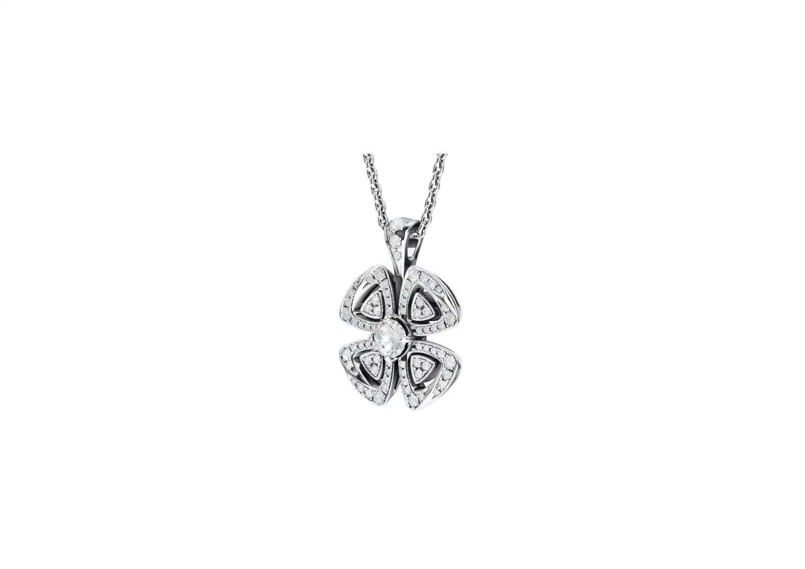 Crafted with meticulous attention to detail, the Fiorever necklace showcases a central diamond that radiates with unparalleled brilliance. Embraced by four exquisite white gold open-worked petals, adorned with shimmering pavé diamonds, this necklace is a true testament to Bvlgari's exceptional craftsmanship.