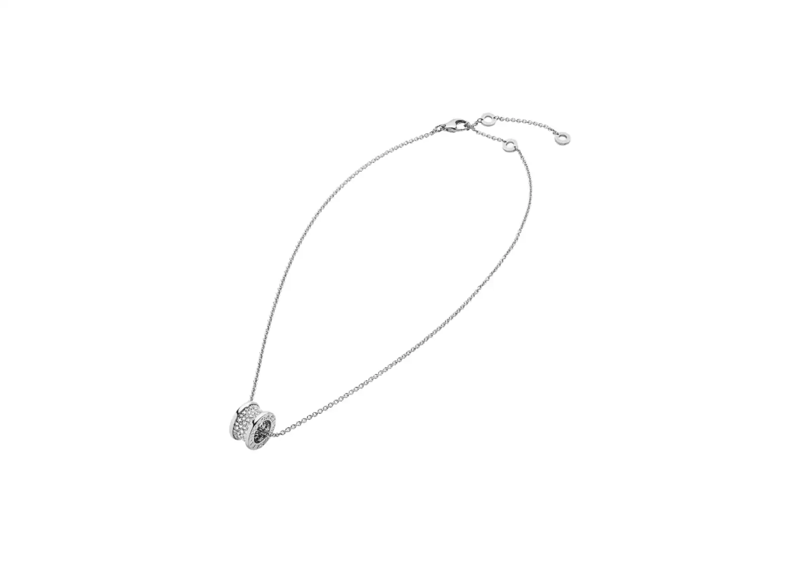 Crafted with meticulous attention to detail, the necklace showcases Bulgari's pioneering spirit and commitment to excellence. The 18 kt white gold chain and pendant exude a timeless beauty, effortlessly enhancing any outfit with a touch of sophistication.