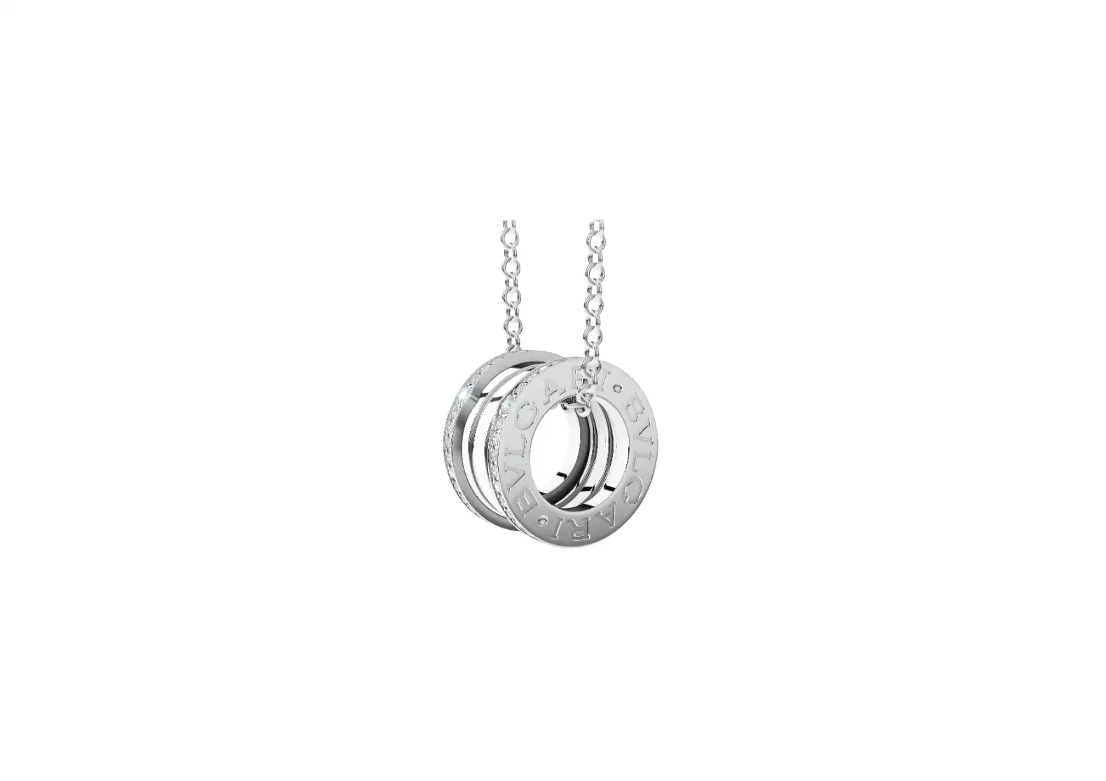 Introducing the Bvlgari Zero1 necklace with 18 kt white gold chain and 18 kt white gold round pendant set. Drawing its inspiration from the iconic Colosseum, this necklace is a testament to Bulgari's unparalleled creativity and innovative approach to jewellery design.