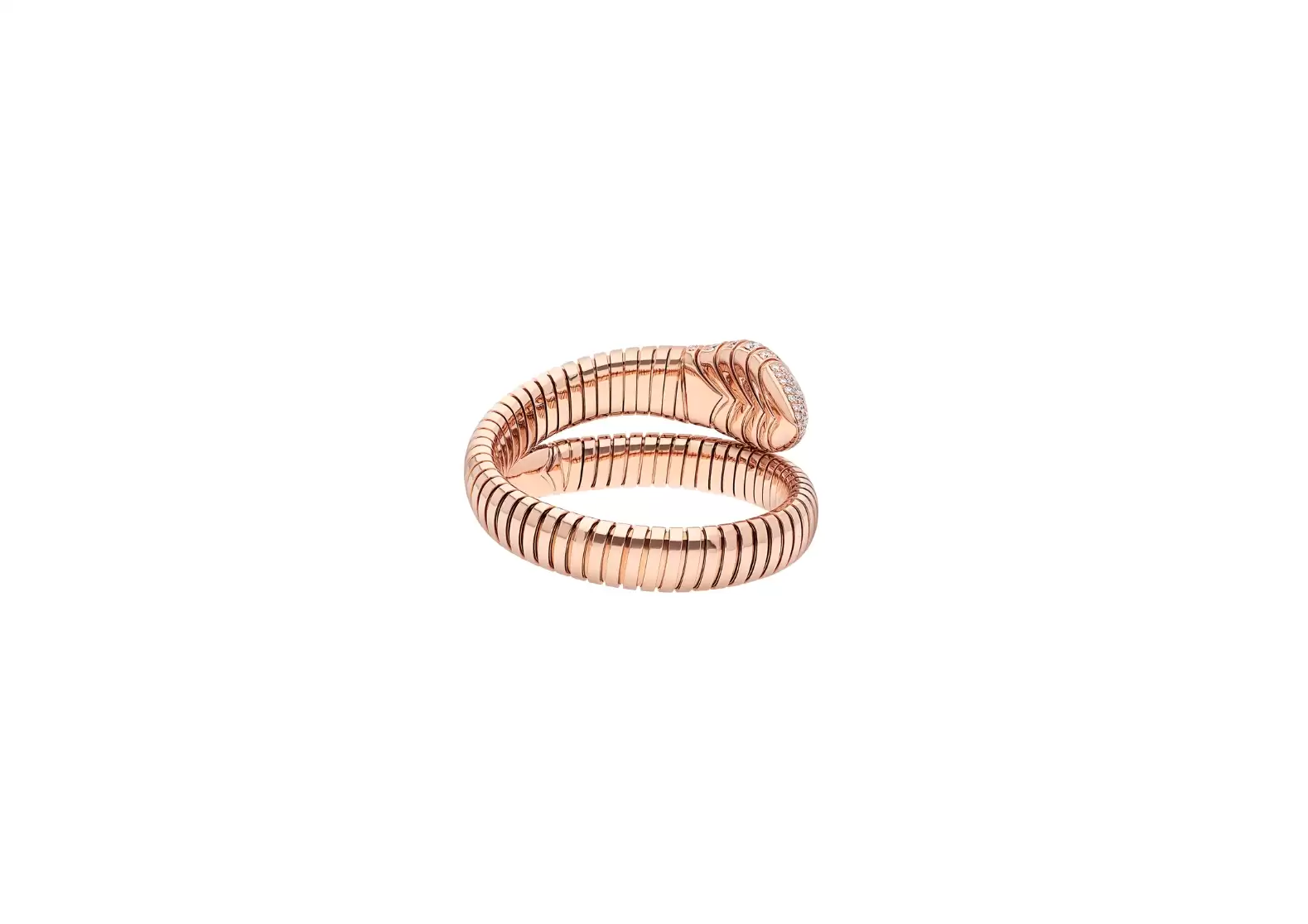 Introducing the Serpenti Tubogas single spiral bracelet in 18 kt rose gold, adorned with dazzling pavé diamonds. This exquisite piece merges two of Bulgari's most iconic symbols, resulting in a design that is truly captivating.