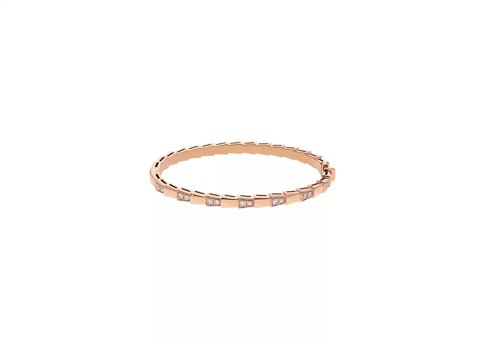 Introducing the Serpenti Viper 18 kt rose gold bracelet set with demi-pavé diamonds. This exquisite piece of jewelry is more than just an accessory; it is a symbol of power, allure, and elegance.