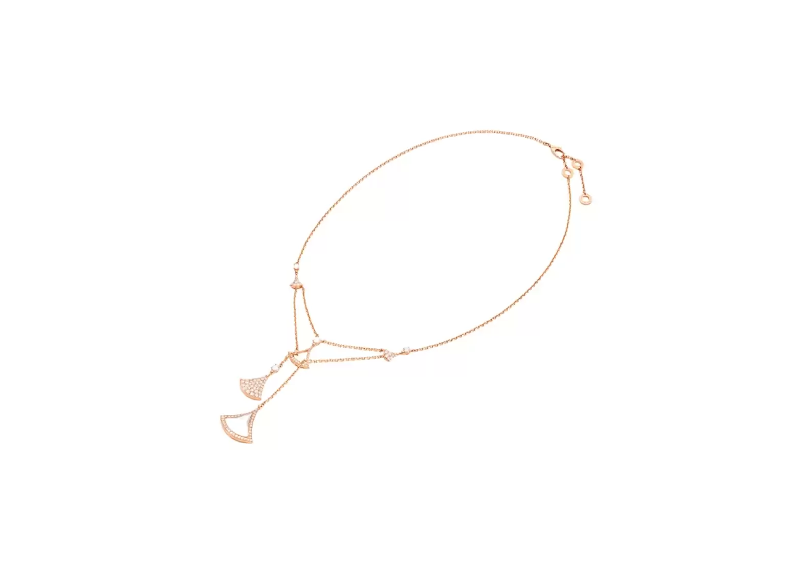 Introducing the Divas`Dream necklace in 18 kt rose gold, a true testament to Italian glamour and Roman spirit. Crafted with utmost precision and attention to detail, this necklace is a refined embodiment of elegance and sophistication.