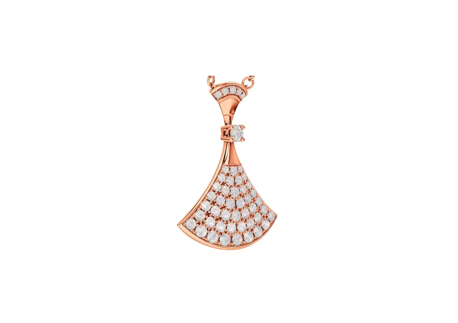 Introducing the exquisite Divas`Dream necklace in 18 kt rose gold, a true testament to feminine elegance and the captivating charm of the eternal city. This stunning piece pays homage to the most glamorous divas, embodying an unmistakable Roman spirit that is sure to captivate all who lay eyes upon it.
