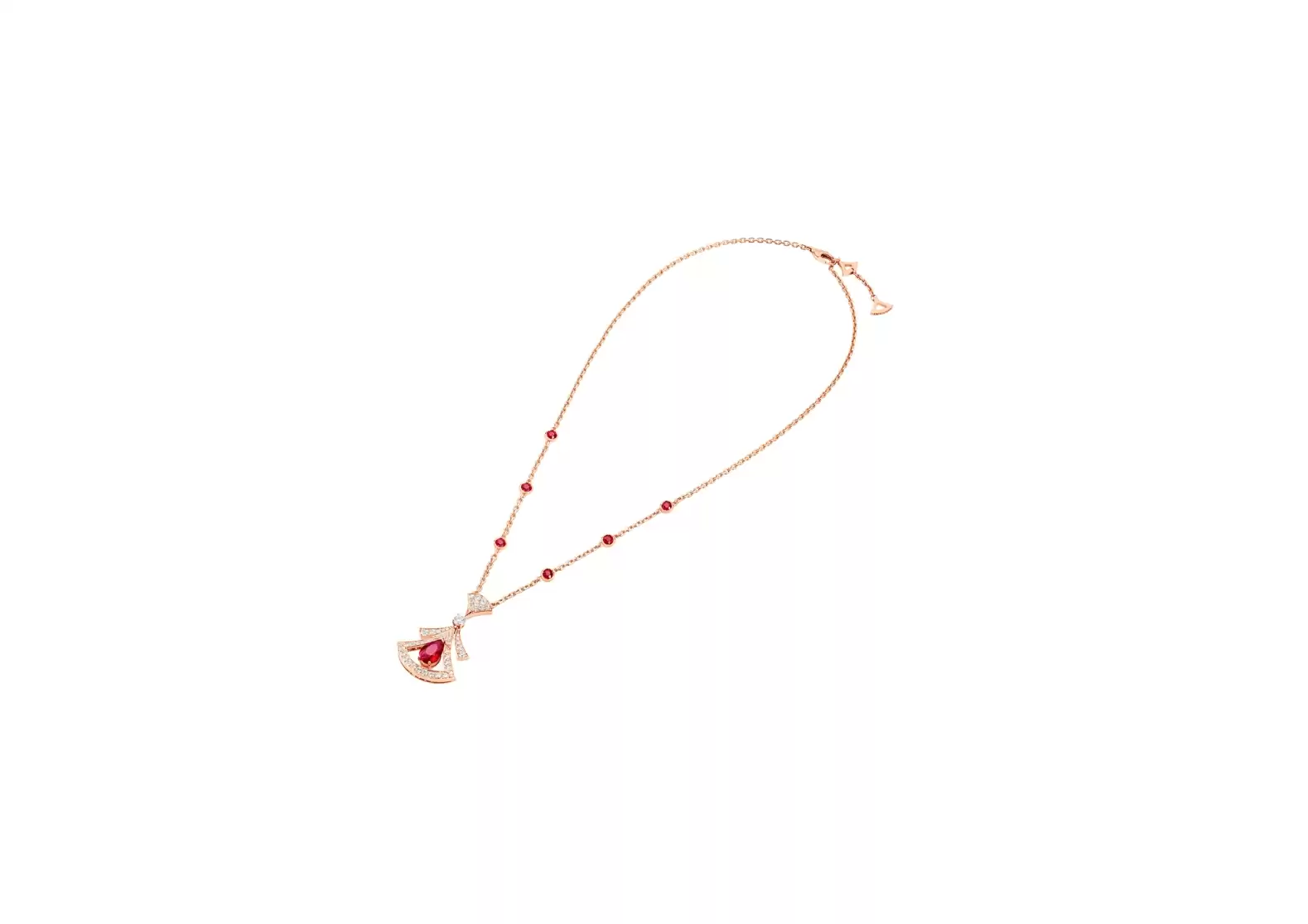 Drawing inspiration from the vibrant mosaics found in the Roman Baths of Caracalla, this necklace showcases a fan-shaped motif that reflects Bvlgari's deep connection with the Eternal City and the beauty of Italian craftsmanship.