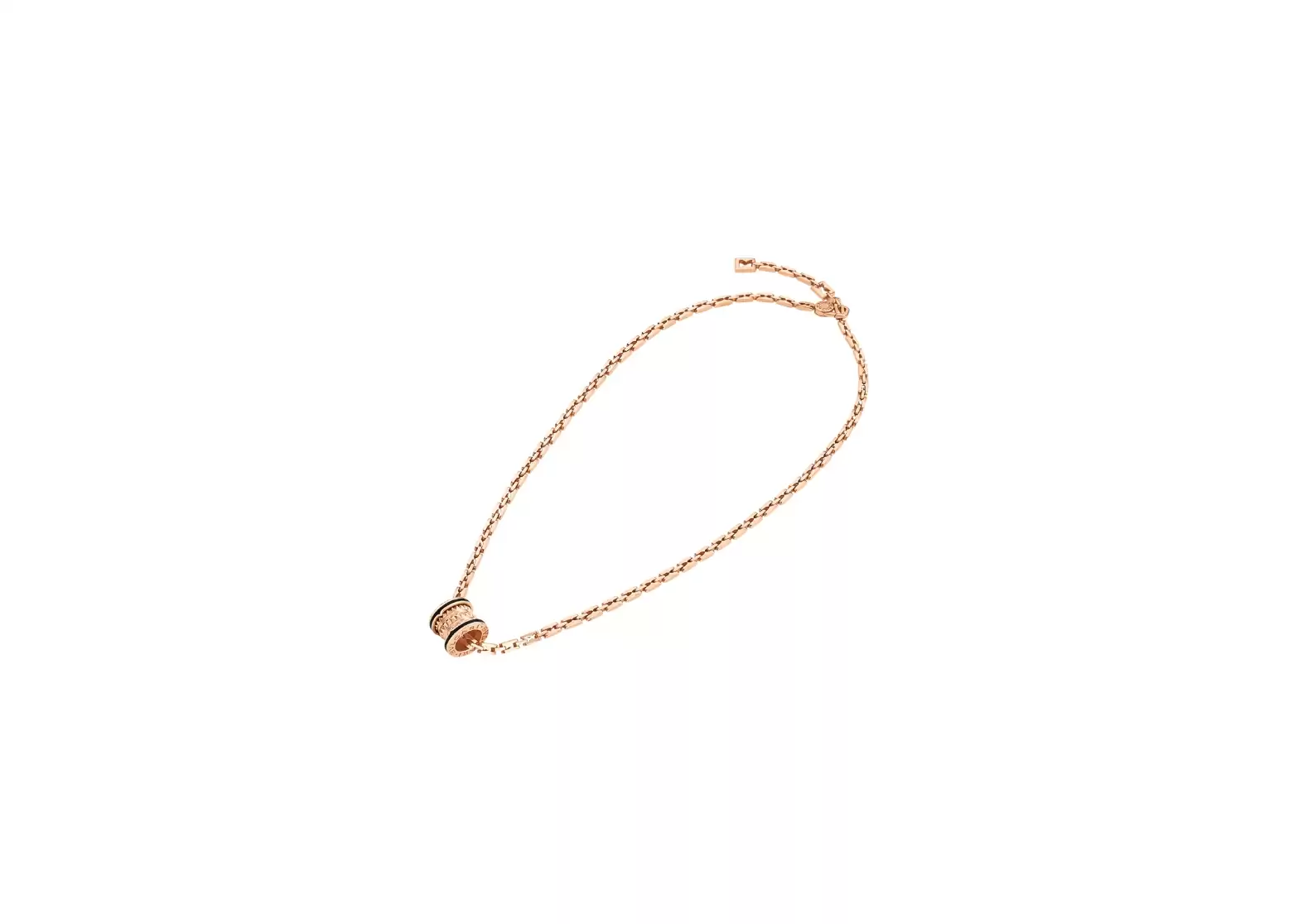 Prepare to challenge the very essence of jewellery aesthetics with this 18 kt rose gold necklace. Its distinctive chain, inspired by the iconic B.zero1 ring's silhouette, offers two different length options, ensuring a perfect fit for any occasion. But it's the collection's emblematic spiral that truly sets this necklace apart.