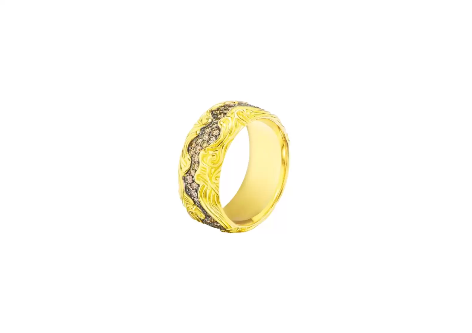 Introducing the exquisite Preloved: Waves Band Ring in 18K Yellow Gold with Cognac Diamonds, a true masterpiece that effortlessly combines elegance and sophistication. Crafted with meticulous attention to detail, this ring is sure to captivate anyone who sets their eyes upon it.