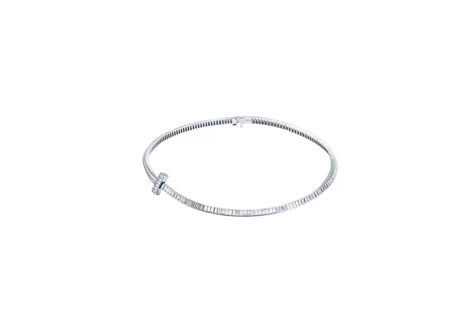 Adorned with striking baguette diamonds, this necklace is a reinvention of a Tiffany icon. The Tiffany T1 designs are not just mere accessories, but they represent individual strength and perpetual power. Wearing this necklace outwardly expresses the inner qualities that make you unique and extraordinary.