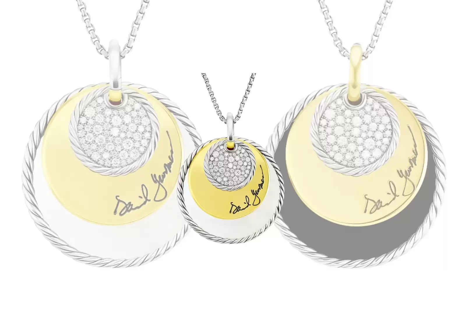 Introducing the Preloved: DY Elements® Eclipse Pendant Necklace, a stunning piece crafted with meticulous attention to detail. Made with sterling silver and adorned with 18-karat yellow gold, this necklace exudes elegance and sophistication.