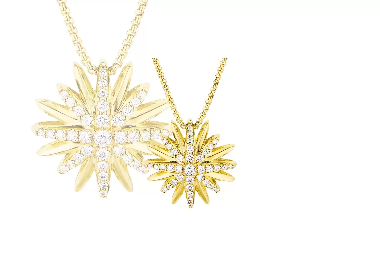 Made from luxurious 18-karat yellow gold, this necklace boasts a timeless elegance that will never go out of style. The pendant features a dazzling starburst design, adorned with pavé-set diamonds totaling 0.41 carats. These sparkling diamonds add a touch of glamour and sophistication to the necklace, making it a true statement piece.