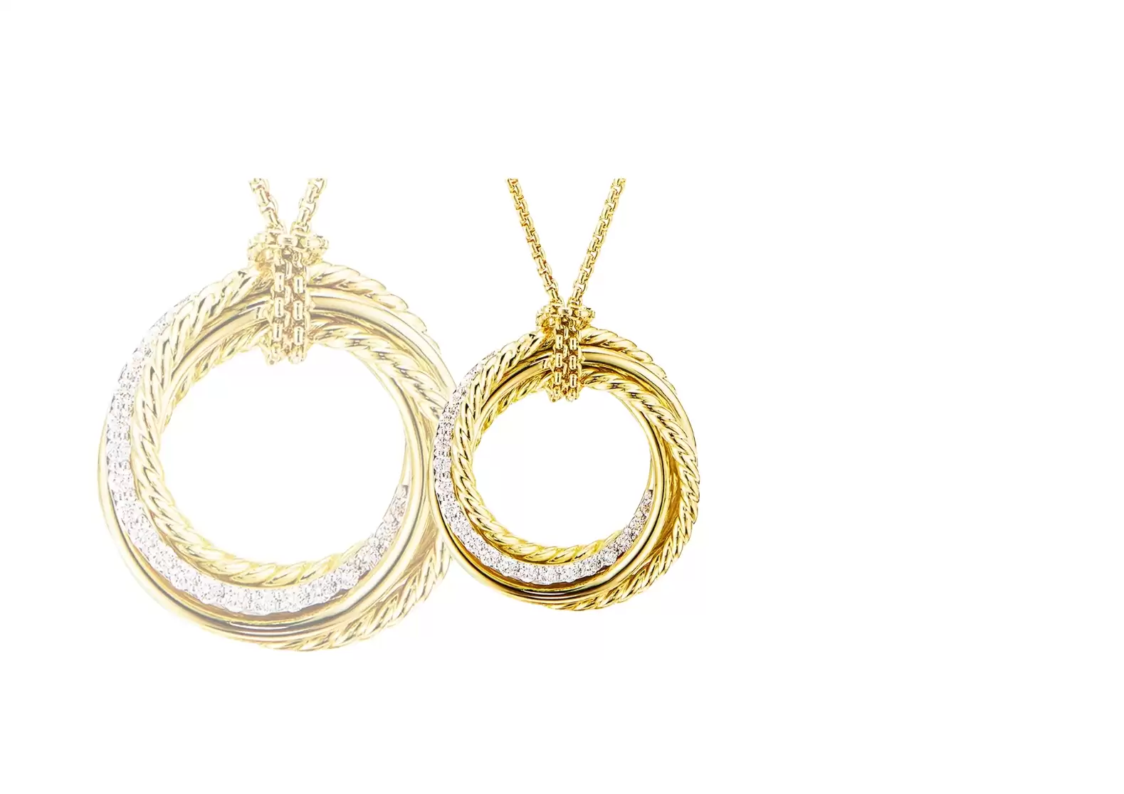 Introducing the exquisite Preloved: Crossover Pendant Necklace in 18K Yellow Gold with Diamonds. Crafted with utmost precision and attention to detail, this stunning piece is a true testament to timeless elegance.