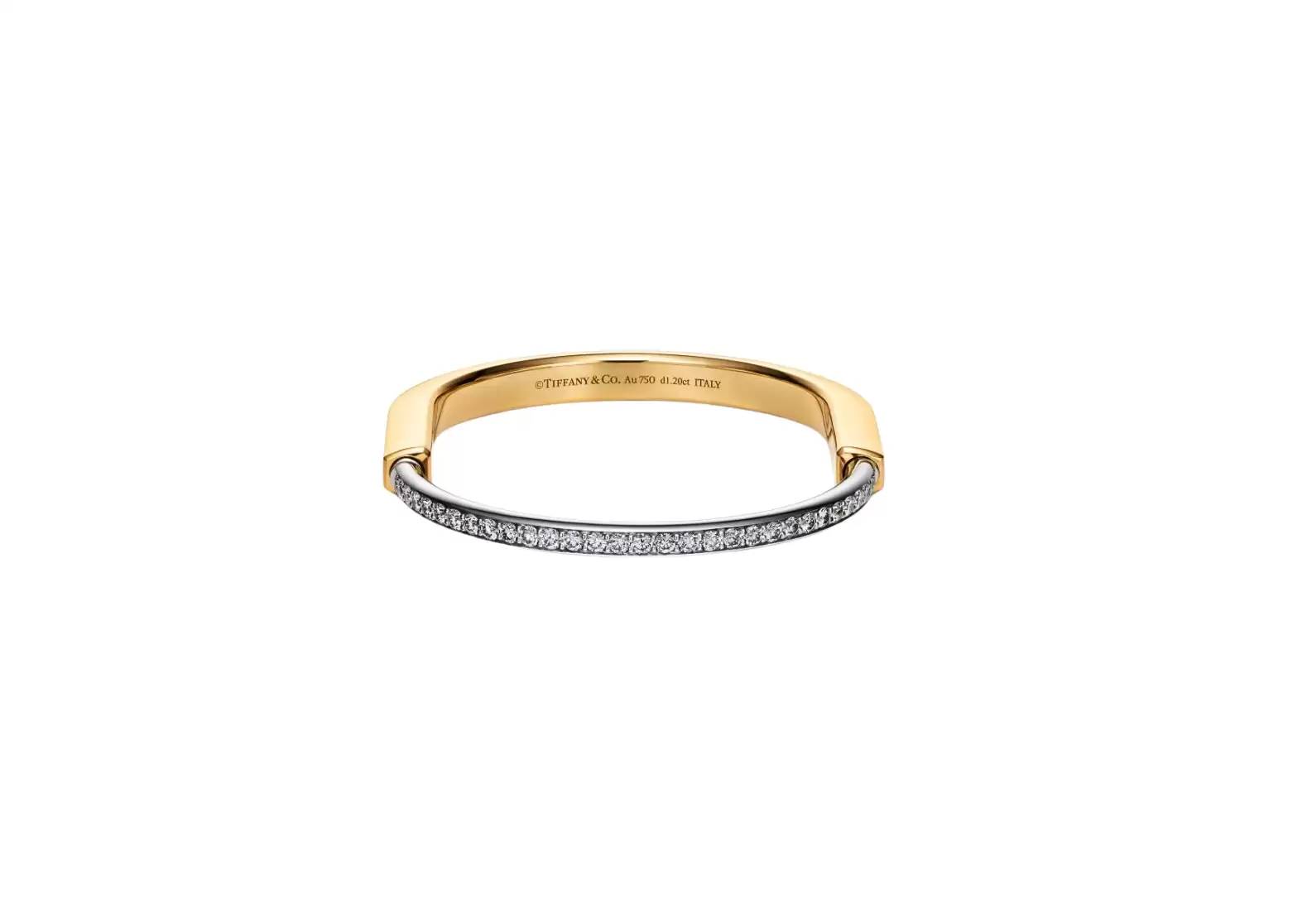 Embrace the power of togetherness and make a bold statement with the Preloved: Tiffany Lock Bangle in Yellow and White Gold with Half Pavé Diamonds I 70181142. Experience the timeless elegance and craftsmanship that Tiffany & Co. is renowned for.Introducing the Preloved: Tiffany Lock Bangle in Yellow and White Gold with Half Pavé Diamonds I 70181142. This exquisite piece is inspired by the power of togetherness and inclusivity, serving as a visual representation of the personal bonds that shape our identities. Designed to be worn by all genders, the Tiffany Lock bangle showcases a unique clasp reminiscent of a padlock, an iconic symbol from The Tiffany Archives.