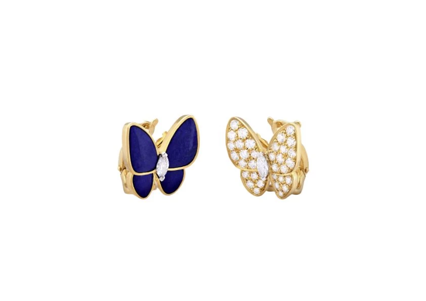 To accentuate the beauty of the diamonds, the 18K white gold is rhodium plated, adding a lustrous and durable finish. The marquise-cut diamonds delicately adorn the body of the butterflies, enhancing the overall design and adding a touch of glamour.