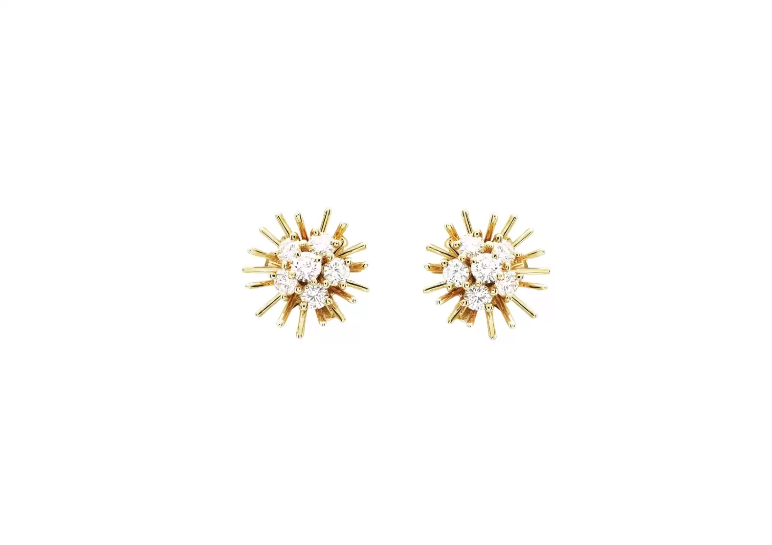 Enhancing the elegance of these earrings are the dazzling round diamonds, meticulously set to perfection. Adorned with a total of 12 diamonds, weighing 0.97 carats, these precious stones effortlessly catch the light, creating a scintillating display of brilliance.