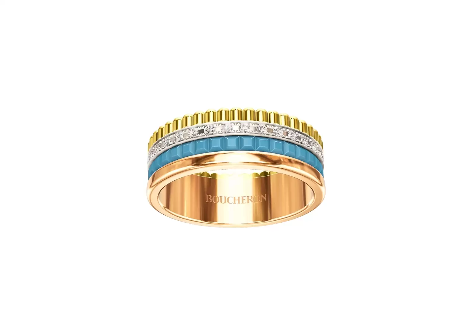 The band of this magnificent ring is expertly crafted from 18K yellow, pink, and white gold, adding a touch of sophistication and elegance. The combination of these three gold hues creates a harmonious and visually striking contrast, making this ring truly unique.