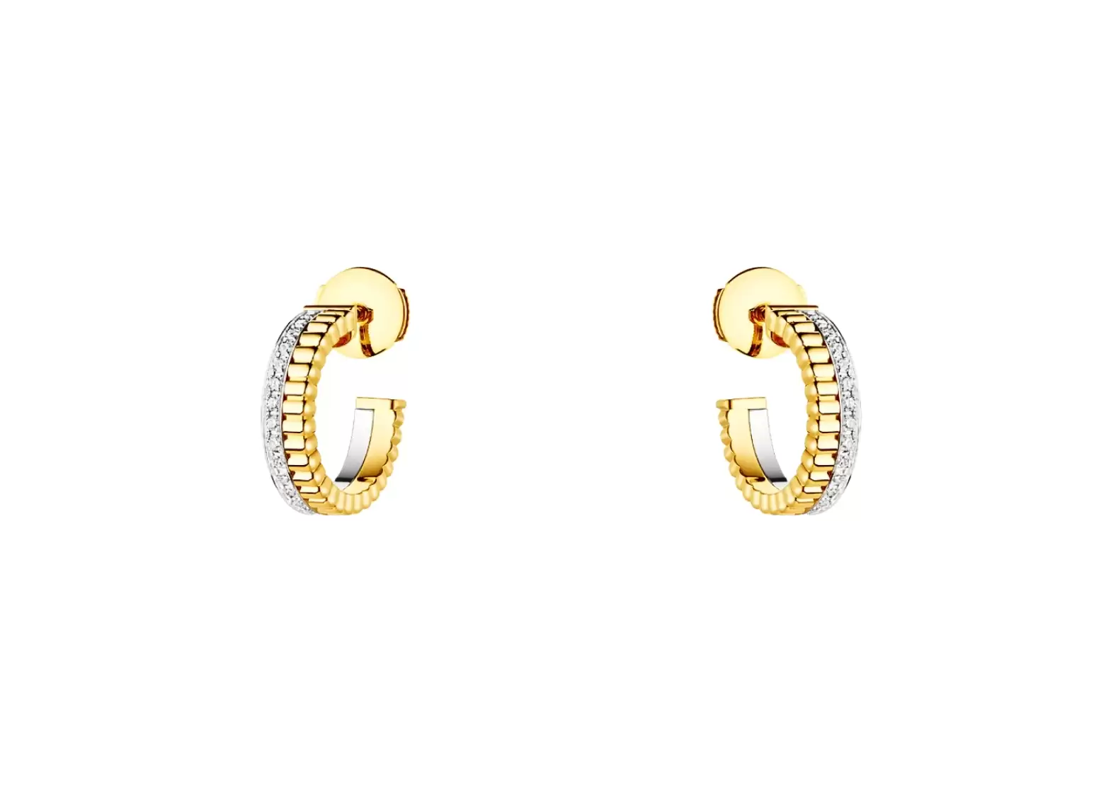 To further enhance their allure, these hoop earrings are crafted with a combination of yellow and white gold, totaling an impressive 18 carats. The contrasting colors of the gold add depth and dimension to the overall design, creating a truly unique and luxurious piece of jewelry.