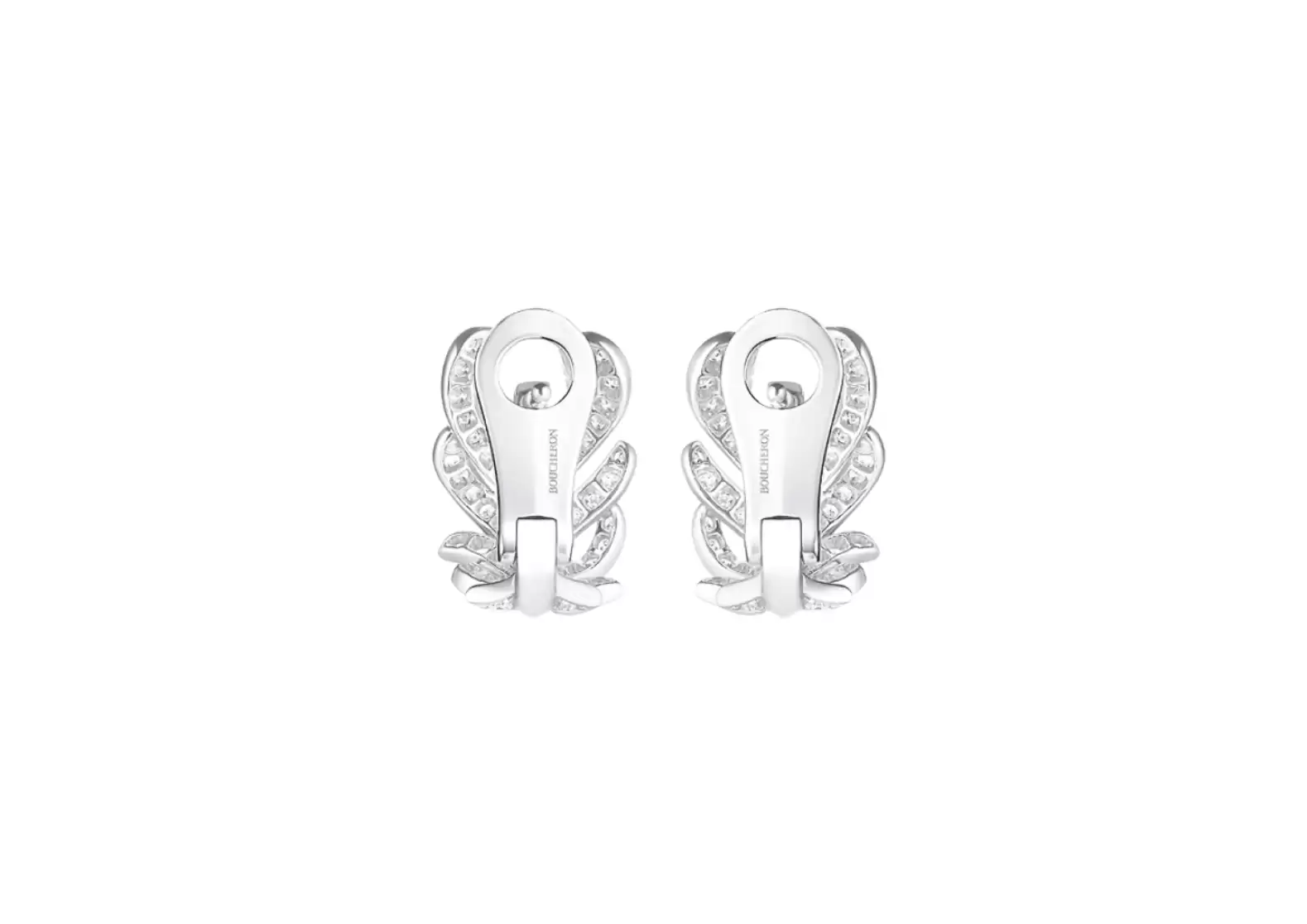 Made from premium 18-carat white gold, these earrings exude a timeless charm that effortlessly complements any ensemble. The lustrous white gold adds a touch of opulence, elevating your style to new heights.