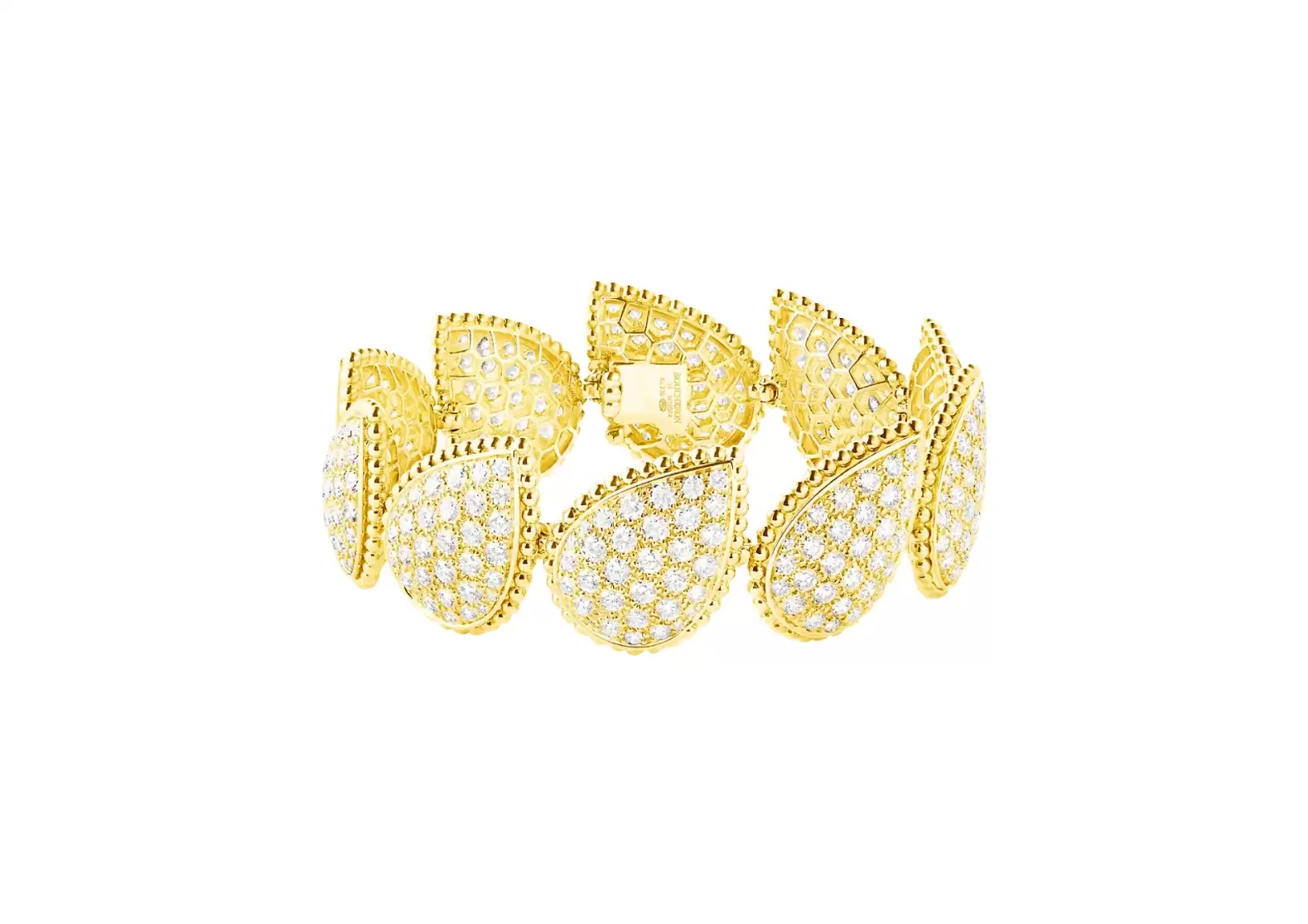 The bracelet features a dazzling display of 320 round diamonds, totaling an impressive 12.61 carats. Each diamond is carefully selected for its exceptional brilliance and clarity, creating a mesmerizing sparkle that will illuminate any ensemble. Set in 18 carats of radiant yellow gold, this bracelet exudes a warm and radiant glow, adding a touch of opulence to your wrist.