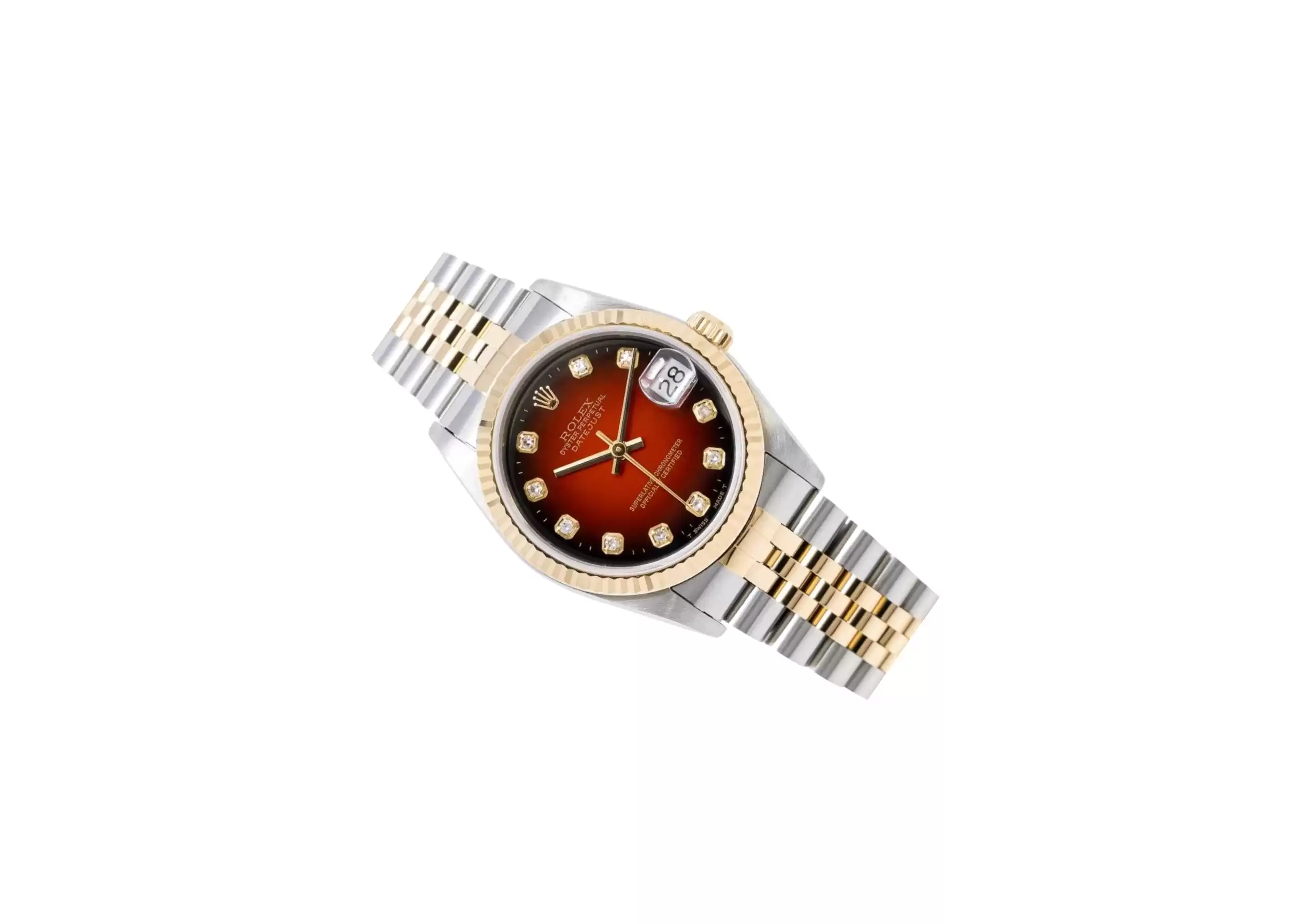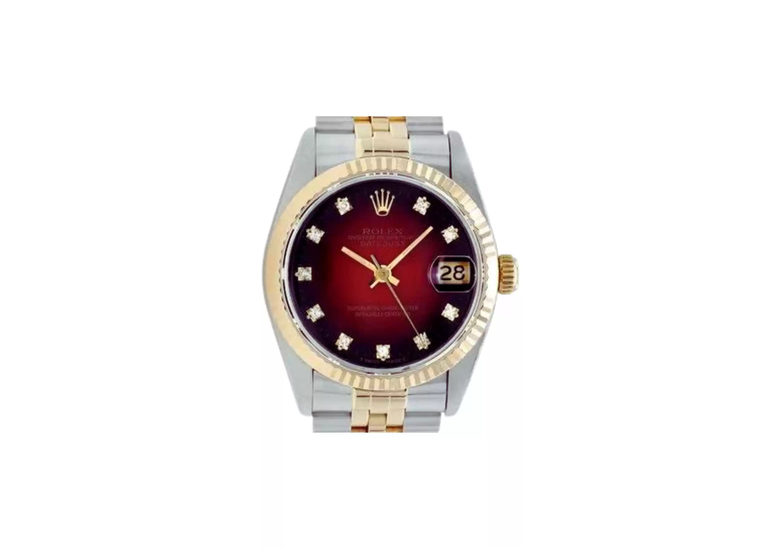 DescriptionIntroducing the exquisite Rolex Datejust 31 Steel And Gold Factory Red Vignette Diamond Dial 68273, a true masterpiece for the sophisticated woman. Crafted with precision and elegance, this timepiece is a testament to Rolex's unwavering commitment to luxury and style. Featuring a stunning gold and steel case, this watch exudes a timeless charm that effortlessly blends classic and contemporary elements. The automatic movement ensures impeccable accuracy, while the gold and steel bracelet adds a touch of opulence to your wrist. Manufactured in approximately 1990, this Rolex Datejust 31 is in very good condition, exhibiting minimal signs of wear. Rest assured, it has been meticulously cared for, guaranteeing its longevity and reliability. As a testament to its authenticity, this timepiece comes complete with its original box and papers, ensuring its provenance and adding to its collectible value. With its sleek design and impeccable craftsmanship, this Rolex Datejust 31 is the epitome of luxury and sophistication. Indulge yourself in the world of timeless elegance with this extraordinary women's watch from Rolex. Elevate your style and make a statement with the Rolex Datejust 31 Steel And Gold Factory Red Vignette Diamond Dial 68273. |