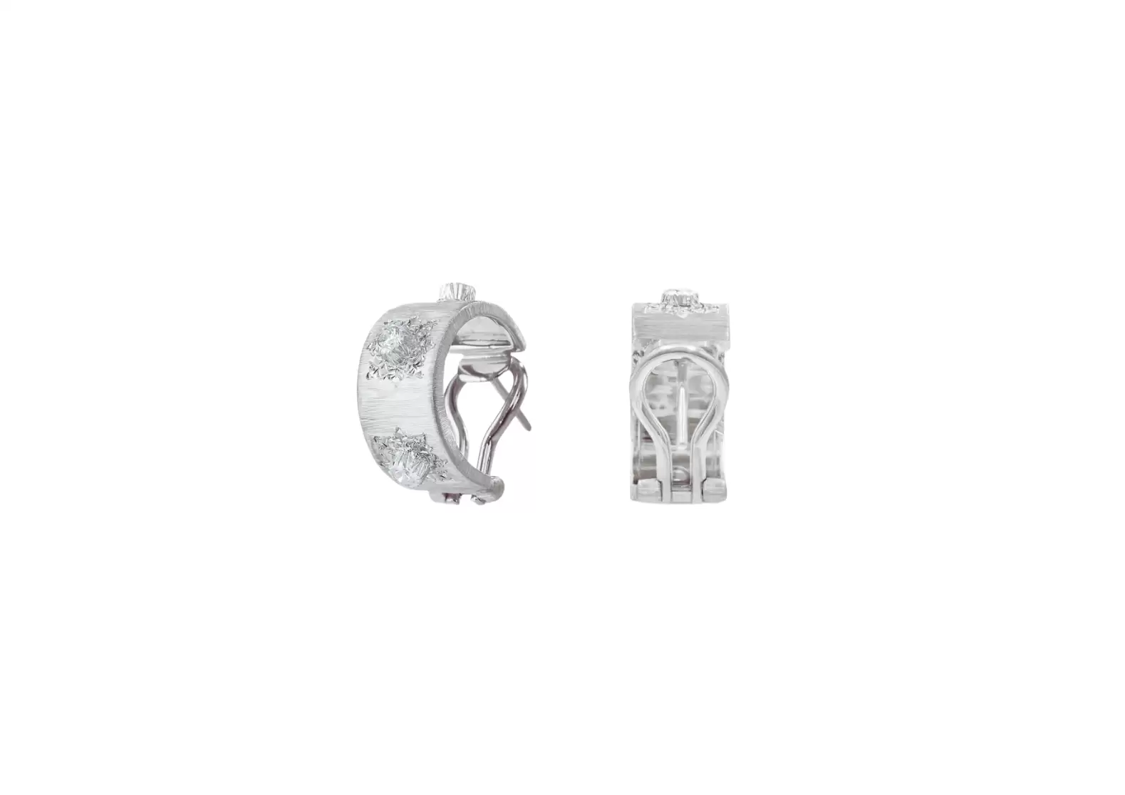 Introducing the exquisite Preloved: Macri Classica Earrings in White Gold set with Diamonds. Crafted with utmost precision and artistry, these earrings from the Macri Collection showcase the pinnacle of rigato effect achieved through meticulous handmade engraving.
