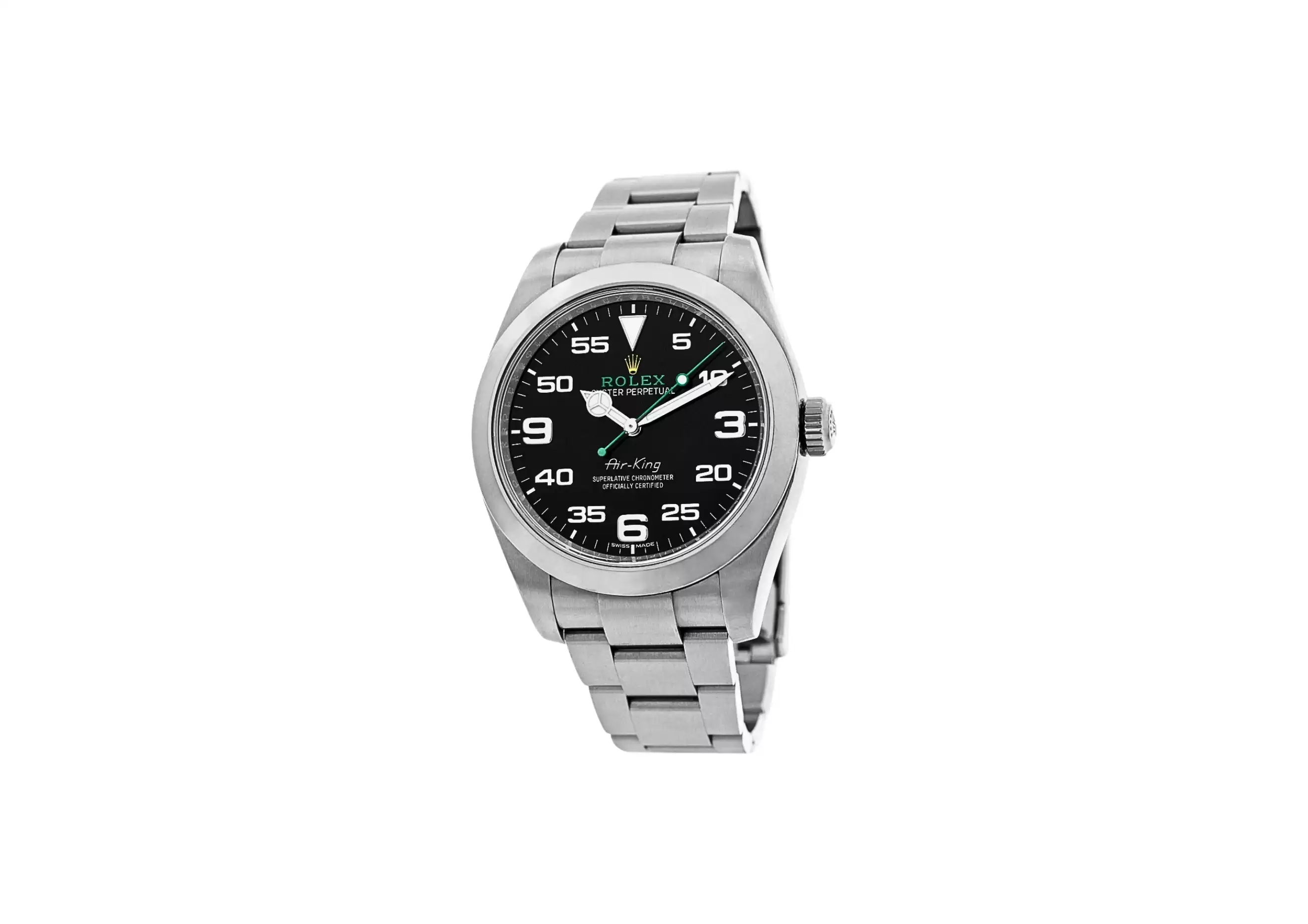 DescriptionIntroducing the Pre-owned Rolex Air-King 116900, a timepiece that exudes sophistication and style. This remarkable watch comes with a host of impressive features that are sure to captivate any watch enthusiast. Crafted with precision and attention to detail, this Rolex Air-King boasts a sleek steel case with a diameter of 40mm, making it the perfect size for both casual and formal occasions. The automatic movement ensures accurate timekeeping, so you never miss a beat. The black Arabic dial adds a touch of elegance and class to this timepiece, making it a versatile accessory that can effortlessly complement any outfit. With water resistance up to 100 meters, this watch is suitable for everyday wear and can withstand the occasional splash or swim. The steel bracelet, known as the Oyster bracelet, not only adds to the overall aesthetic appeal but also provides a comfortable fit with its length of 18cm. It is designed to withstand the test of time, just like the watch itself. When it comes to authenticity and peace of mind, this Pre-owned Rolex Air-King comes with papers, ensuring its genuine origin. Additionally, it still has 11 months remaining on the manufacturer's warranty and an impressive 24-month Watchfinder warranty, giving you added reassurance. Overall, the Pre-owned Rolex Air-King 116900 is a timeless masterpiece that combines impeccable craftsmanship with modern functionality. With its sleek design, reliable performance, and impressive warranty, this watch is a true investment that will elevate your style to new heights. |