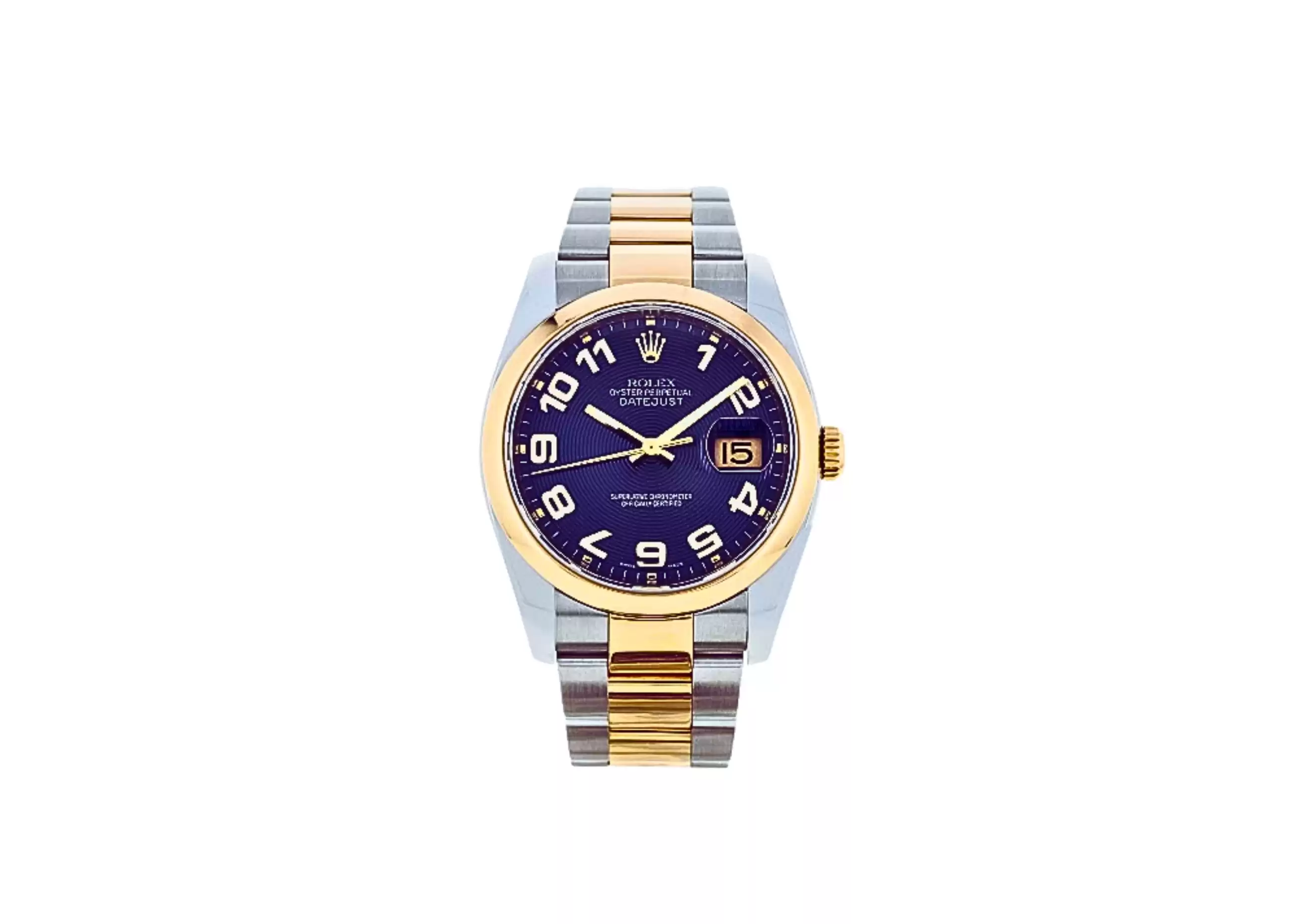 DescriptionIntroducing the exquisite Rolex Datejust 116203, a timeless masterpiece that exudes elegance and sophistication. Crafted in 2009, this remarkable timepiece is a true testament to Rolex's exceptional craftsmanship and attention to detail. With a case size of 36mm, this watch is perfectly proportioned to adorn any wrist with grace. The case material, made from a combination of steel and yellow gold, showcases a harmonious blend of strength and luxury. This stunning design is further enhanced by the automatic movement, ensuring precise timekeeping for years to come. The bracelet of the Rolex Datejust 116203 is also crafted from steel and yellow gold, offering a seamless integration of style and comfort. With a length of 16cm, it effortlessly wraps around your wrist, providing a secure and comfortable fit. Featuring a captivating blue concentric Arabic dial, this timepiece exudes a sense of sophistication and refinement. The intricate detailing on the dial adds a touch of uniqueness, making it a true standout in any collection. With a water resistance of up to 100 meters, this Rolex Datejust 116203 is not only a symbol of luxury but also a reliable companion for any adventure. Whether you're diving into the depths of the ocean or simply enjoying a leisurely swim, this watch will keep ticking with unwavering precision. Located conveniently, a simple call will grant you the opportunity to view this extraordinary timepiece in person. Don't miss the chance to own a piece of horological excellence with the Rolex Datejust 116203. Experience the perfect blend of style, functionality, and luxury with this remarkable watch. |
