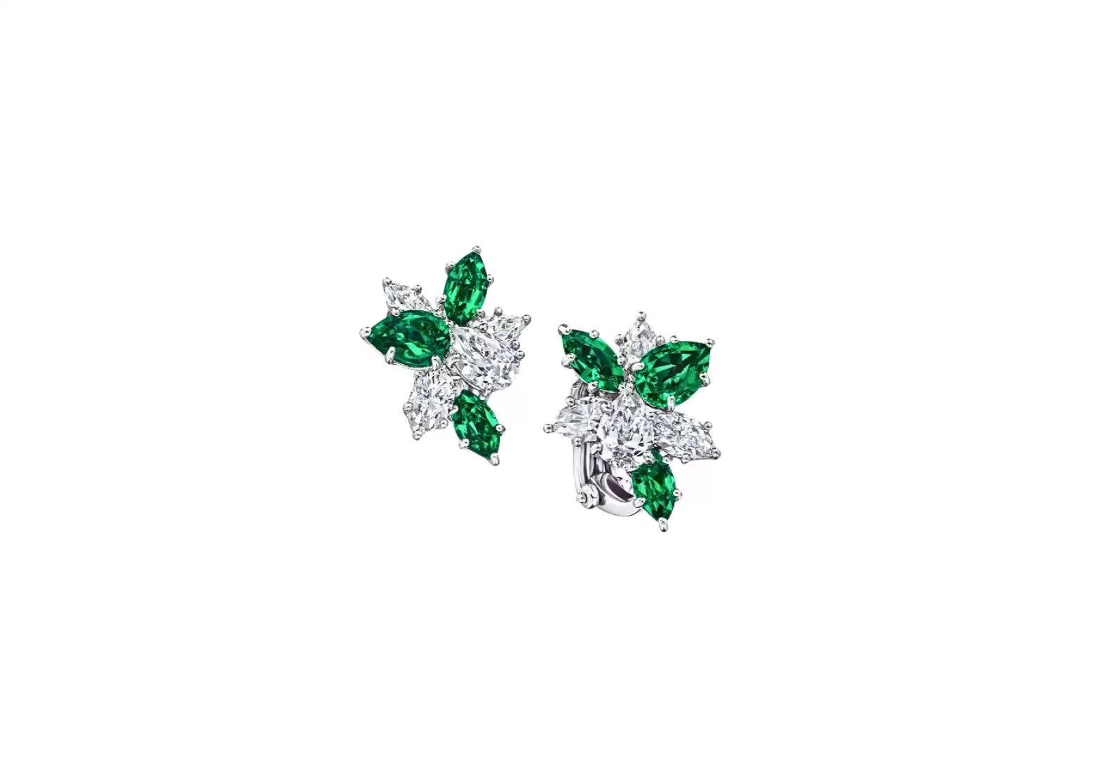Introducing the exquisite Preloved: Winston Cluster Emerald and Diamond Earrings, a true masterpiece that effortlessly combines elegance and sophistication. Crafted with utmost precision, these earrings feature a stunning arrangement of 6 marquise and pear-shaped emeralds, collectively weighing approximately 2.65 carats.