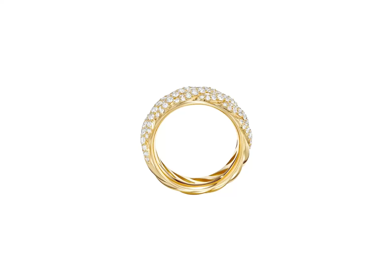 Made from 18-karat yellow gold, this ring exudes a luxurious and radiant aura, adding a touch of opulence to any ensemble. The band is meticulously sculpted, showcasing a unique cable design that adds depth and texture to the piece. This intricate craftsmanship sets it apart from ordinary rings, making it a true statement accessory.