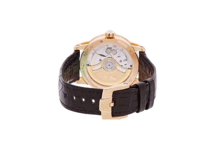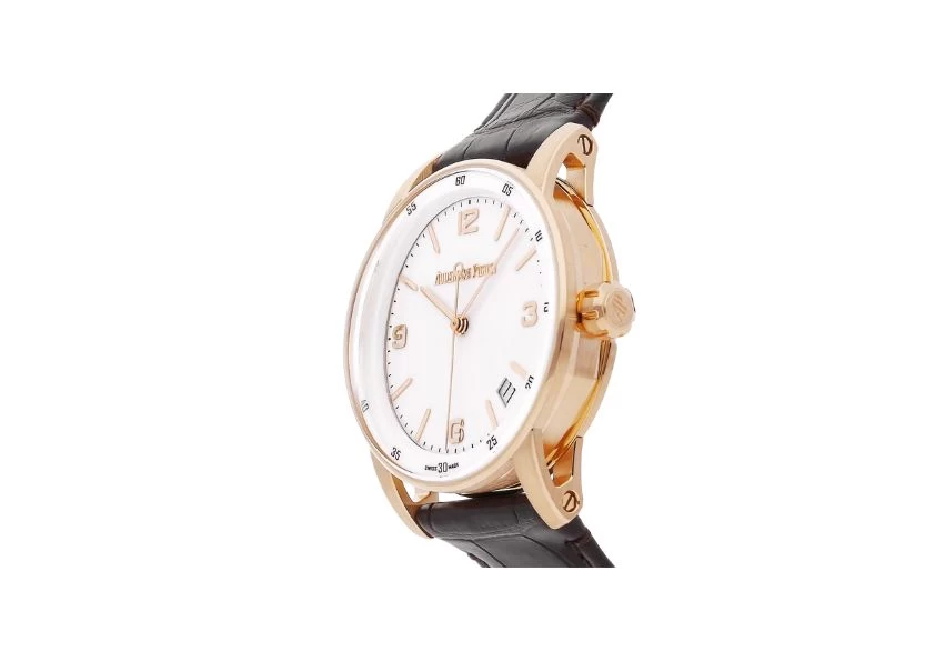 ntroducing the exquisite Pre-Owned Audemars Piguet CODE 11.59 (15210OROOA099CR01) self-winding automatic watch, a true testament to the art of horology. Crafted with precision and elegance, this timepiece is a must-have for any discerning gentleman. Encased in a 41mm 18k rose gold case, this watch exudes a captivating allure that is sure to turn heads. The stunning white dial perfectly complements the luxurious brown alligator strap, which is secured with an 18k rose gold tang buckle. The combination of these fine materials creates a harmonious blend of sophistication and refinement. Designed for ultimate functionality, this timepiece boasts a range of impressive features. With its precise self-winding automatic movement, you can trust that it will keep accurate time, ensuring you never miss a beat. The watch also offers essential functions including hours, minutes, seconds, and a convenient date display.