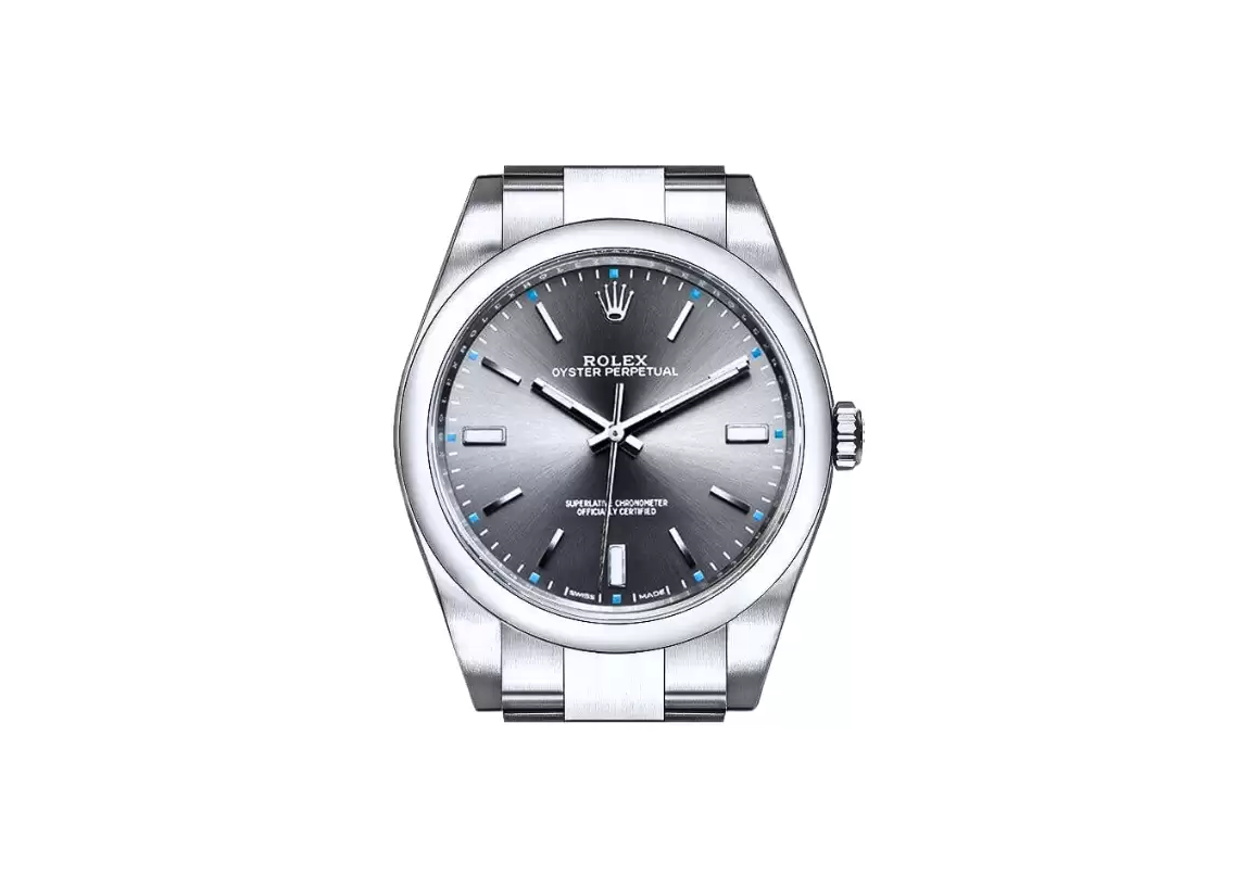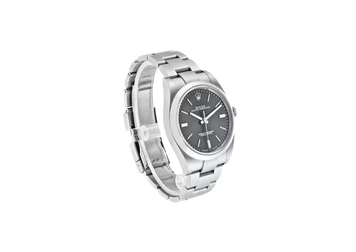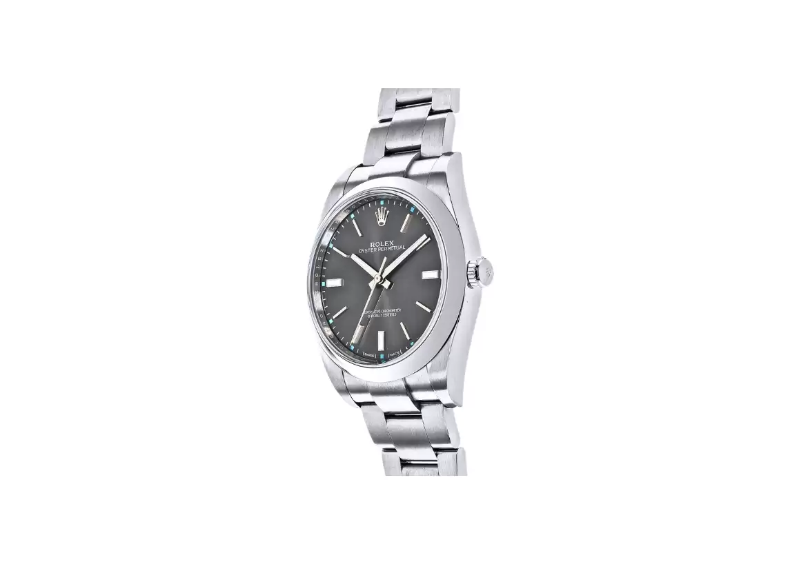 DescriptionIntroducing the Rolex Oyster Perpetual 39 Automatic Steel Men's Watch 114300-0001, a timepiece that exudes elegance and sophistication. This Swiss-made watch is a true masterpiece, with its dark rhodium grey dial and index hour markers, creating a sleek and modern look. Crafted from polished 904L Oystersteel stainless steel, this watch features a domed bezel that adds a touch of luxury. The stop-seconds feature allows for precise time setting, ensuring accuracy in every moment. With a 48-hour power reserve and self-winding automatic movement, this watch is always ready to keep up with your busy lifestyle. Certified by COSC as a Superlative Chronometer, the Rolex Caliber 3132 guarantees exceptional precision and reliability. With 31 jewels and a vibration rate of 28,800 per hour, this watch is a true testament to Rolex's commitment to excellence. Rest assured that this Rolex Oyster Perpetual 39 Automatic Steel Men's Watch is guaranteed authentic, and it comes with a certificate of authenticity. It is accompanied by a manufacturer box and manual, adding to the overall experience of owning a Rolex timepiece. The brushed 904L Oystersteel stainless steel case and bracelet not only provide durability but also enhance the watch's overall aesthetic appeal. The scratch-resistant sapphire crystal ensures clear visibility of the dark rhodium grey dial, while the 100 meters (330 feet) waterproof feature allows for worry-free wear in various environments. With a 39mm (1 1/2") case size, this watch is suitable for any occasion and will fit wrists up to 7 inches. The fixed bezel adds a touch of sophistication, while the luminescent hands and hour markers ensure easy readability in any lighting condition. The screw-down crown with the Twinlock double waterproofness system and screw-down case back guarantee the watch's water resistance, making it perfect for water-related activities. The Oysterclasp deployment buckle ensures a secure and comfortable fit on your wrist. In summary, the Rolex Oyster Perpetual 39 Automatic Steel Men's Watch 114300-0001 is a true symbol of luxury and precision. With its impeccable design, top-notch craftsmanship, and exceptional features, this watch is a must-have for any watch enthusiast. Elevate your style and make a statement with this timeless timepiece from Rolex. |