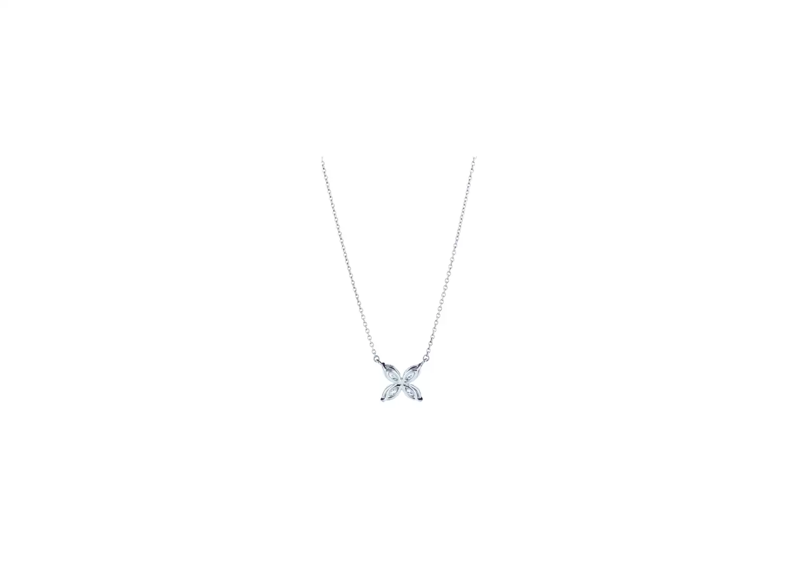 Crafted with utmost precision, this pendant exudes an elegant simplicity that effortlessly transitions from day to evening. Made from luxurious platinum, it boasts a stunning arrangement of marquise diamonds, adding a touch of sophistication and grace to any outfit.