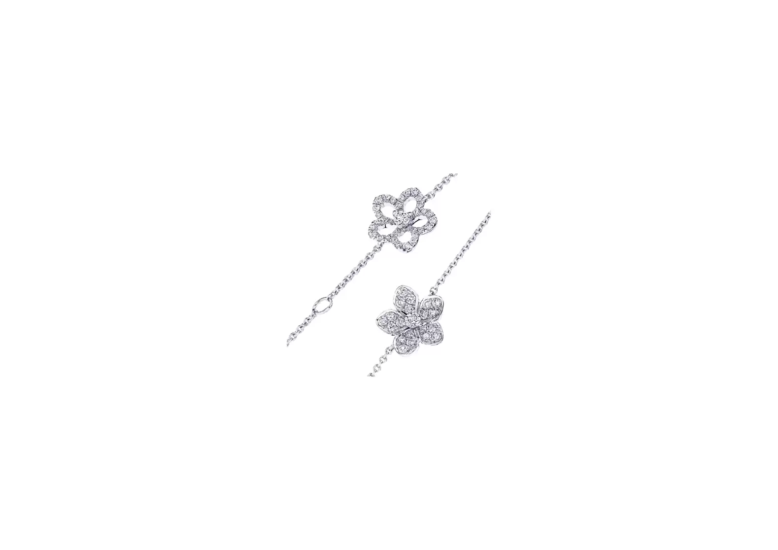 The Wild Flower Pavé Diamond Bracelet boasts a total weight of approximately 0.99 carats, ensuring a dazzling sparkle that will catch the light from every angle. Its refined beauty is further enhanced by the white gold setting, adding a touch of sophistication to this already captivating piece.