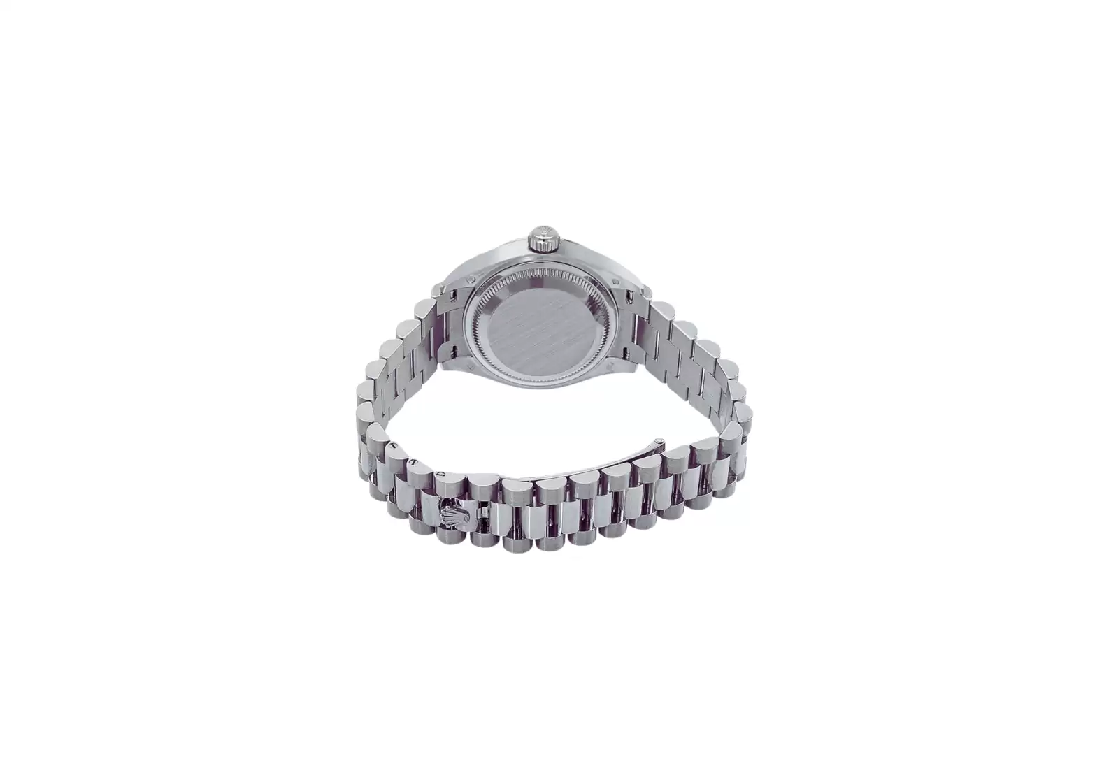 In summary, the Pre-owned Rolex Lady-Datejust 28 White Gold Women's Watch 279139RBR-0002 is a true masterpiece that celebrates the artistry and precision of Rolex. With its exquisite design, luxurious materials, and exceptional functionality, this watch is a must-have for any discerning woman who appreciates timeless beauty.