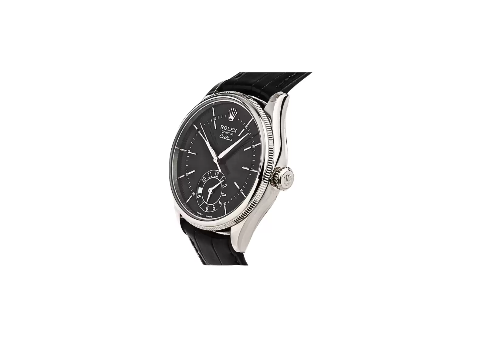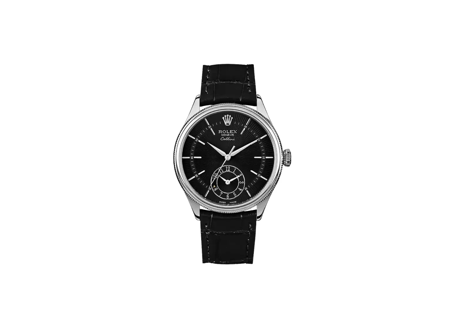 Introducing the Pre-owned Rolex Cellini Dual Time Black Dial 18k White Gold Men's Watch 50529-0007, a timepiece that epitomizes elegance and opulence. Crafted with meticulous attention to detail, this exquisite watch is a true testament to Rolex's commitment to quality.