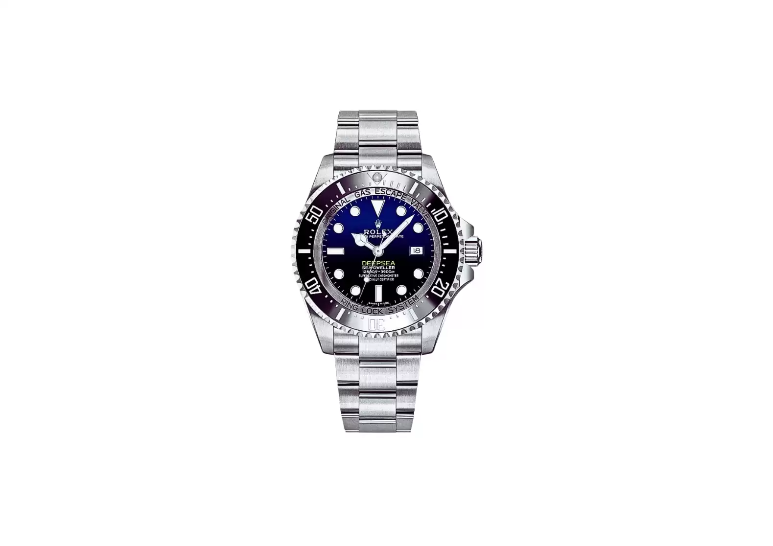 The polished and brushed 904L Oystersteel stainless steel case and bracelet exude luxury and durability. The scratch-resistant sapphire crystal protects the dial, while the watch boasts an impressive water resistance of 3900 meters or 12800 feet.