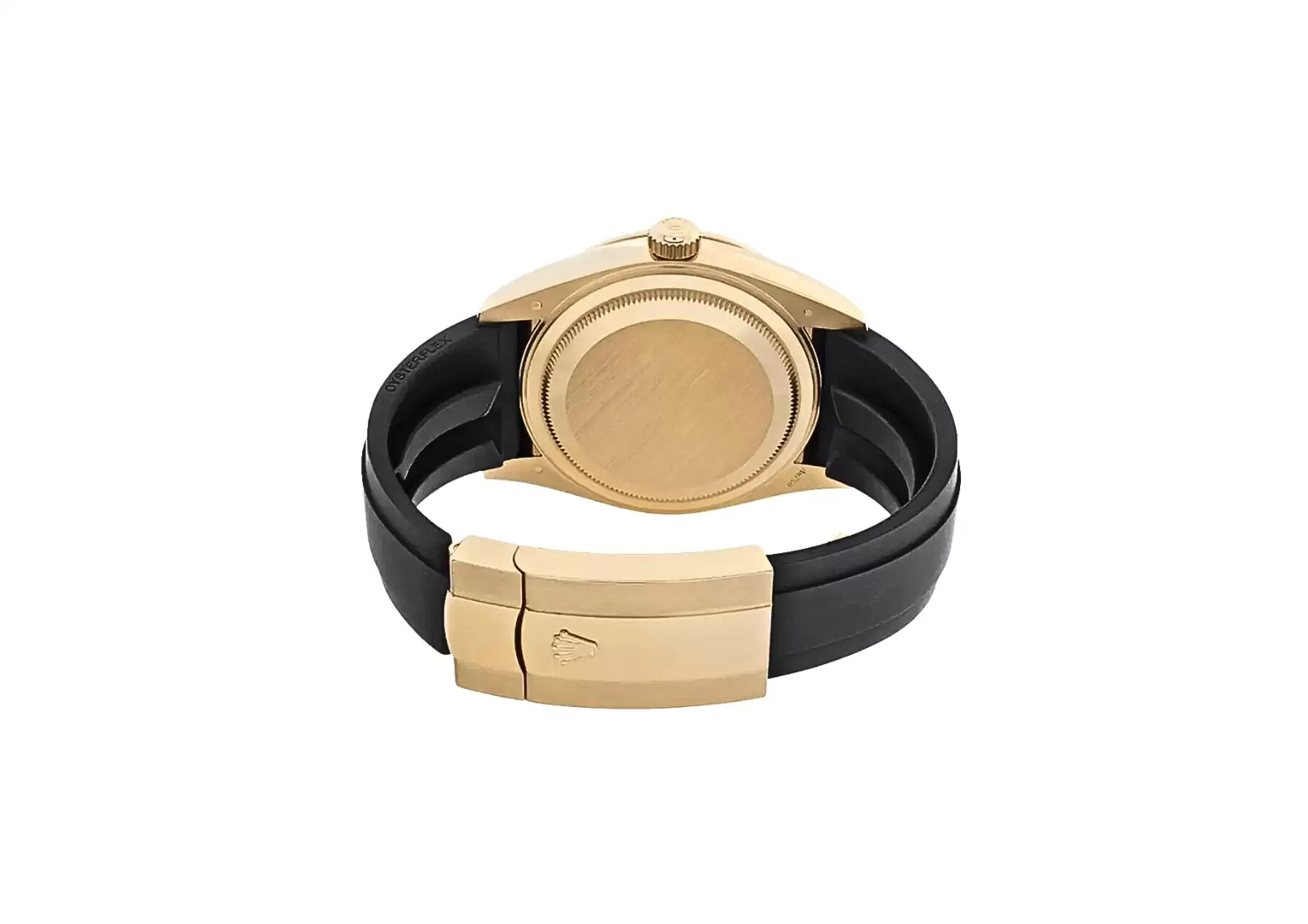 The 42mm polished solid 18k yellow gold case exudes luxury and sophistication, while the black Oysterflex bracelet adds a contemporary touch. The Oysterflex bracelet, with its internal flexible metal blades and high-performance elastomer, offers both comfort and durability.