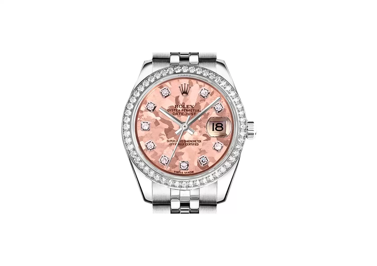This watch comes with all the features you would expect from a Rolex. It is Swiss made and comes with manufacturer serial numbers, guaranteeing its authenticity and quality. The crystal gold pink dial is adorned with diamonds, adding a touch of glamour to your wrist. The diamond hour markers further enhance its beauty.