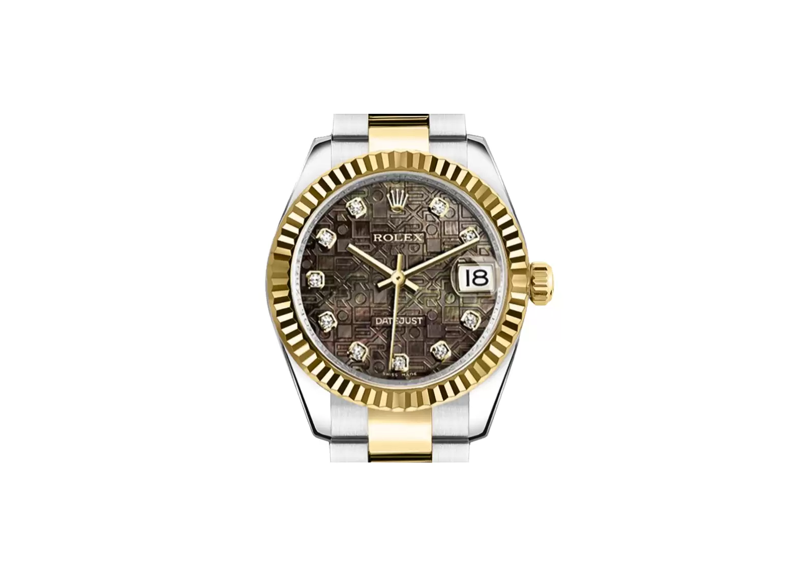 With its black Mother of Pearl Jubilee Dial and diamond hour markers, this watch exudes a sense of timeless beauty. The polished solid 18k yellow gold fluted bezel adds a touch of glamour, making it a statement piece on your wrist.