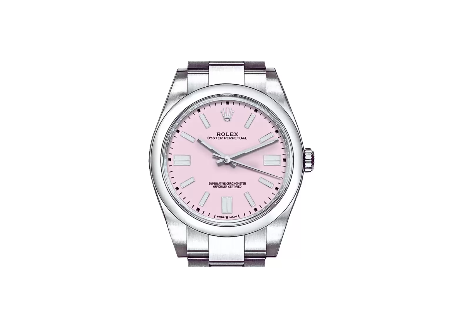 Crafted with meticulous attention to detail, this watch features a candy pink dial adorned with index hour markers, creating a visually striking and feminine look. The polished 904L Oystersteel stainless steel domed bezel adds a touch of elegance and sophistication.
