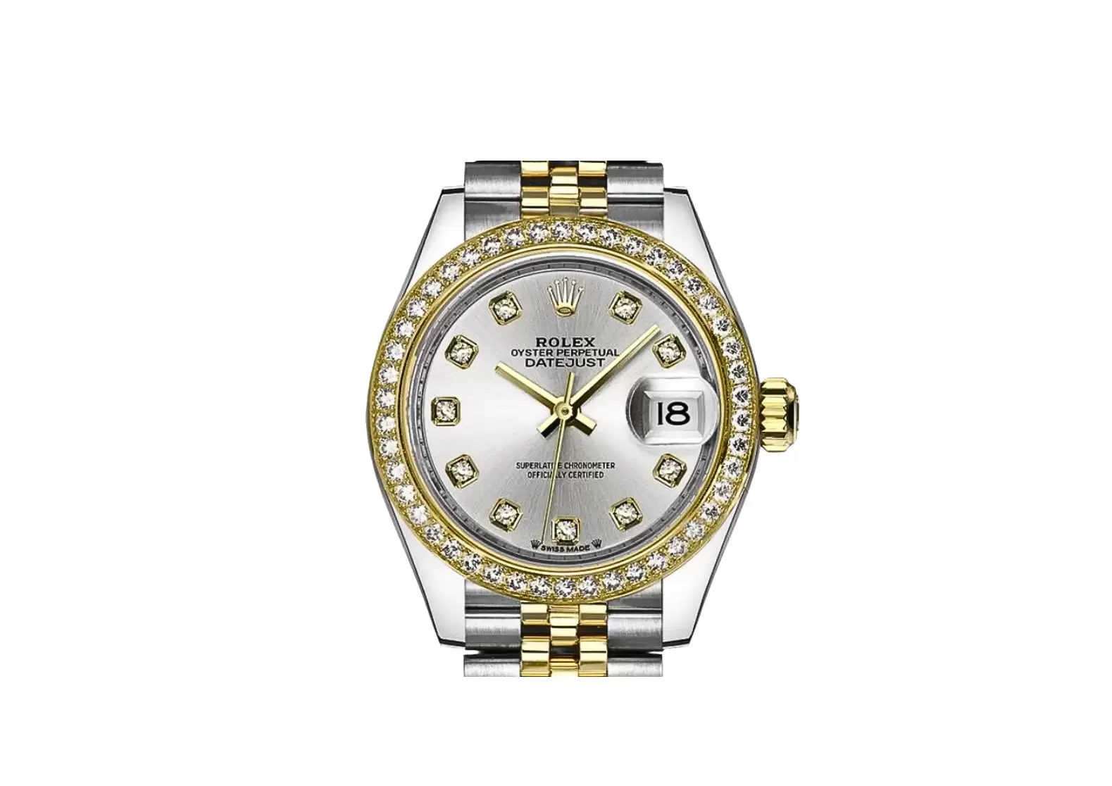 Introducing the Pre-owned Rolex Lady-Datejust 28 Silver Dial Diamond Women's Watch 279383RBR-0007. This exquisite timepiece is a true symbol of luxury and elegance.