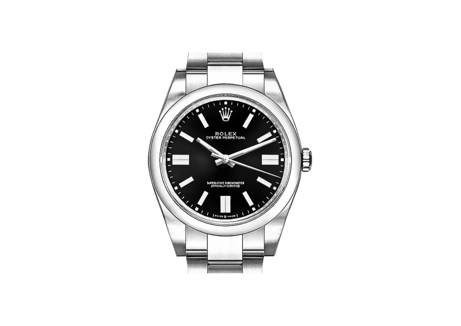 Crafted with meticulous attention to detail, this watch features a striking black dial with index hour markers, creating a sleek and sophisticated look. The polished 904L Oystersteel stainless steel domed bezel adds a touch of elegance and durability to the design.