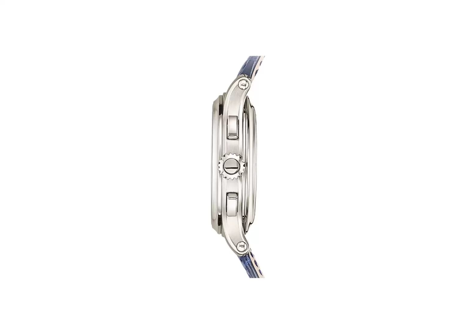 Completing the ensemble is an alligator leather strap with square scales, hand-stitched to perfection. The shiny dusk blue color adds a touch of sophistication. Securing the watch is a fold-over clasp, ensuring a secure and comfortable fit.