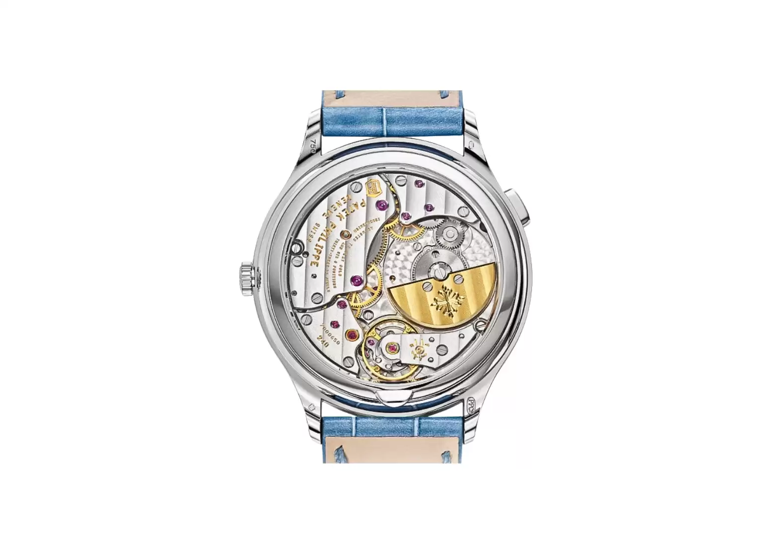 The dial of the Ref. 7130 features gold applied hour markers, adding a touch of sophistication to its overall appearance. Encased in white gold, this watch exudes a timeless charm and is complemented by a sapphire crystal case back, offering a glimpse into the intricate craftsmanship within. With a water resistance of up to 30 meters, this timepiece ensures durability and peace of mind.