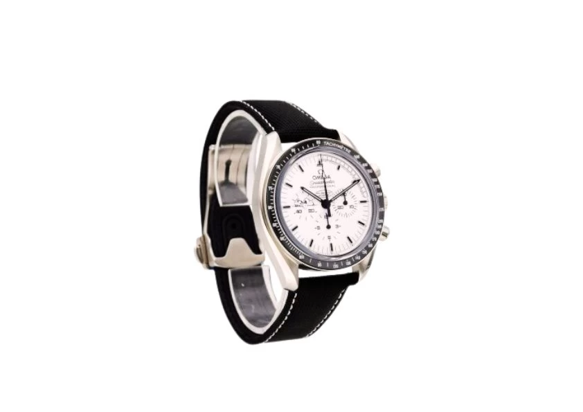 The design of this Moonwatch has been refreshed with a stunning white dial, adorned with a Super-LumiNova Snoopy on the 9 o'clock subdial. The dial proudly displays the iconic phrase "Failure is not an option" and poses the thought-provoking question, "What could you do in 14 seconds?" with 14 squares representing the beloved Snoopy comics. Crafted with meticulous attention to detail, the 42.00 mm polished-brushed case is made from stainless steel, exuding a timeless elegance. The polished black ceramic bezel ring, featuring Super-LumiNova on the tachymeter scale, adds a touch of sophistication to this exceptional timepiece. True to its heritage, this watch is powered by the renowned OMEGA Calibre 1861, ensuring precise and reliable timekeeping. The "Moonwatch" style hands pay homage to the original design, evoking a sense of nostalgia and authenticity. Completing the ensemble is a black coated nylon fabric strap, exuding a sense of ruggedness and durability. And as a symbol of distinction, each watch is accompanied by a meticulously crafted 925 Silver Snoopy medallion, adorned with dark blue enamel on the reverse.