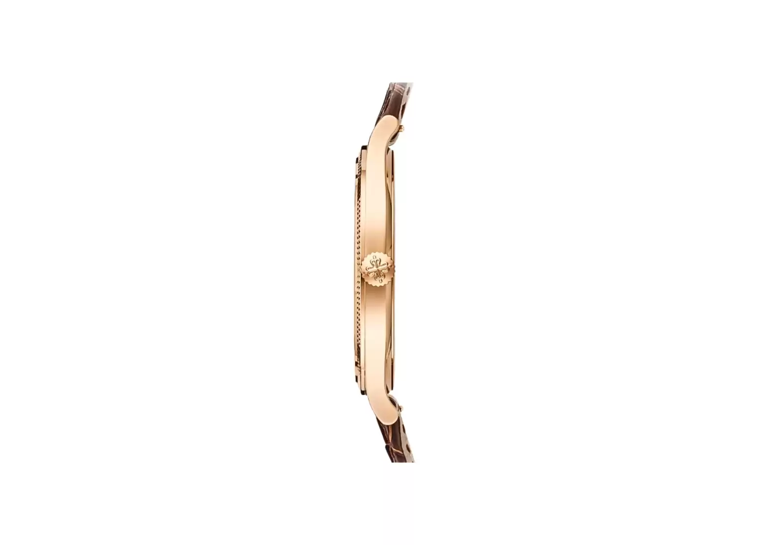 The dial of the Patek Philippe 6119R-001 boasts a sleek and timeless aesthetic. The faceted applied rose gold hour-markers, along with the dauphine-style hours and minutes hands, add to the elegance of the watch. This combination creates a refined and sophisticated look that will never go out of style.